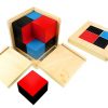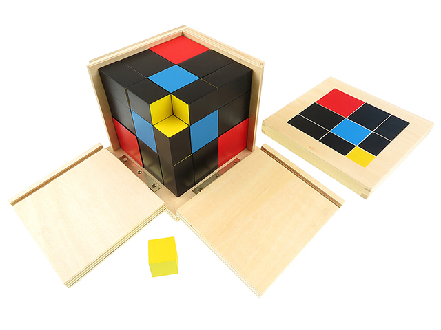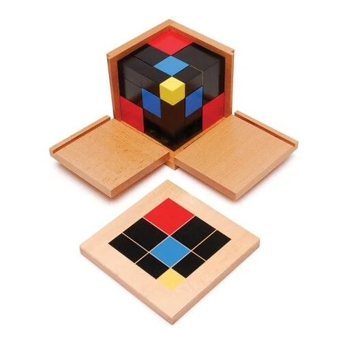 Trinomial Küp cebirsel formülün (a + b + c) somut bir temsilidir. Denklemin faktörleri küpler ve prizmalarla temsil edilir. İlköğretim Montessori çocuğu Trinomial Cube’u cebirsel bir keşif etkinliği olarak kullanır. Kapaklı, menteşeli ahşap bir kutuda bulunur.